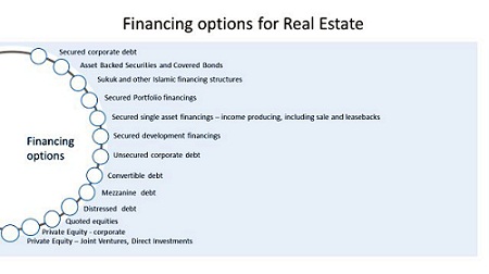 In terms of risk and return Real Estate offers a broad spectrum of opportunities. As a generalisation the following illustrates the range of financing options.