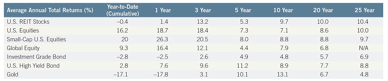 Moreover, as the table below shows REIT performance has historically performed well in the US relative to other asset classes